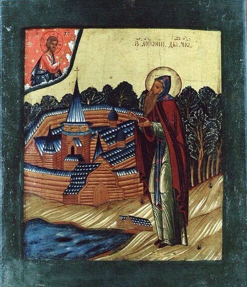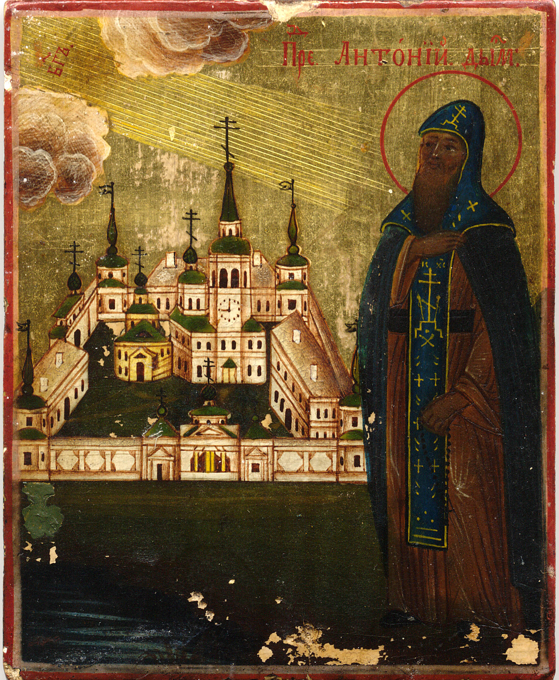 В 1370 году, в дни правления князя Димитрия Иоанновича Донского, были впервые обретены нетленные мощи преподобного Антония Дымского. В 1409 году полчища татар Едыгея вторглись в новгородскую землю. Мощи были спрятаны под спуд. Татары, дойдя до Дымской обители, разграбили ее, а церкви и постройки сожгли.