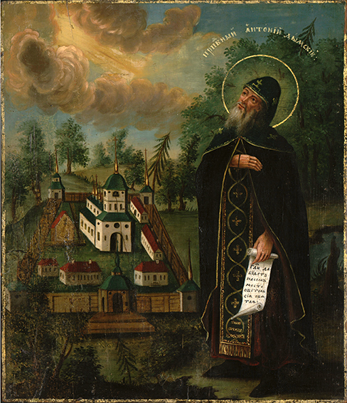 Под надгробием сделано отверстие, из которого верующие берут на память белый песок, обычно добываемый в Дымском озере. Перед гробницею стоит старинный образ Антония Великого (XVIII века) новгородского письма.